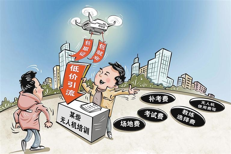 近年来,无人机培训异常火热,截至12月15日,今年无人机培训相关企业注册数量已超过15500家;而去年同期,这一数据仅为4200多家。行业繁荣的背后也有乱象。为了抢客源,有的机构先低价引流,后续在培训考试过程中补收场地费、考试费、教练选择费、无人机使用费等各种费用。有的机构打出“包取证”“包就业”等噱头,实则为虚假承诺。还有的机构无办学资质,不少人上当受骗。对于这类问题,有关部门应加强执法检查,及时查处、清理违法违规现象,杜绝不合规机构钻漏洞,同时督促线上平台下架相关不实广告信息,避免更多人遭受损失。行业内部也应出台自律公约,规范市场秩序,引导企业经营好口碑,降降行业虚火。(时 锋)