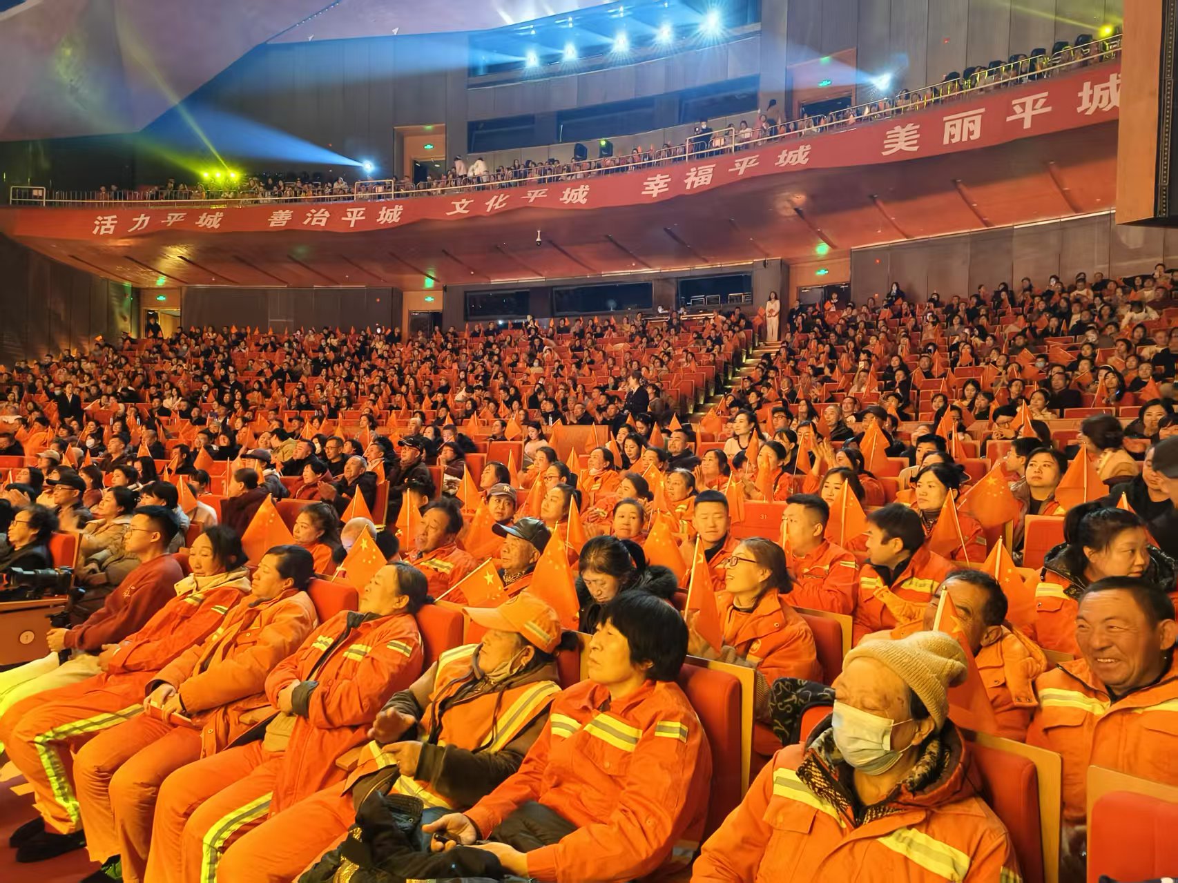 当《世界古典名曲联奏》的熟悉旋律在剧场中回荡,音乐会迎来了尾声。一曲曲经典乐章串联起时光的记忆,奏响了平城区元旦春节群众文化活动的序曲。最后,全体起立,手舞国旗,齐声欢唱《歌唱祖国》,音乐会在喜庆热烈的氛围中落下帷幕。整场演出融中外经典之魂、汇时代奋进之力,每一段旋律都与奋斗者初心同频共振,既彰显艺术高度,更蕴含精神厚度。