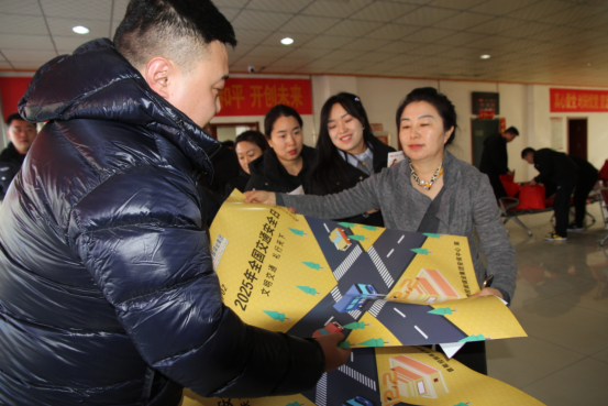 在活动中,公司安保中心联合地面生产车队在矿区主干道、职工候车大厅等重点区域,悬挂“安全出行守规则文明交通护家园”、“一盔一带守安全矿区出行更安心”等主题横幅,张贴交通安全宣传海报,利用电子显示屏循环播放事故警示短片与安全出行常识,全方位营造“人人讲安全、事事为安全、时时想安全”的浓厚氛围。