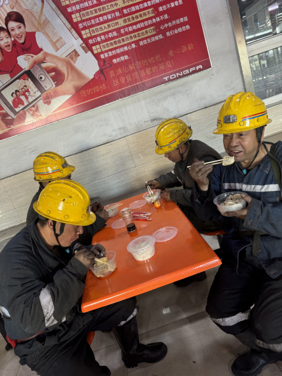 冬至当天一大早,井口服务站的女员工们早早来到工作岗位为员工们准备饺子,她们忙碌着煮饺子、盛饺子、端饺子,将一碗碗热腾腾的饺子送到一线员工手中,并向大家送去了平安问候和安全嘱咐。同时叮嘱他们临近年底,安全工作不能有一丝一毫的松懈,一定要以136安全理念为统领,做实“四抓一保”大文章,严格遵章守纪,岗位规范操作,高高兴兴上班,平平安安回家。听着句句祝福、叮咛的话语,刚出井的矿工们吃着热气腾腾的饺子,嘴角荡漾着幸福的笑容,他们高兴的说:“天气虽然很冷,但这里却像‘家’一样温暖,虽然只是一碗水饺,却体现了公司党委对员工的关心与关爱,让我们吃出了‘家’的味道,真得很暖心!我们一定会牢记安全生产,努力做到知安全,懂规章,以更加饱满的精神状态投入到安全工作中去,全力以赴完成全年各项任务。”(乔飞 齐文娟)