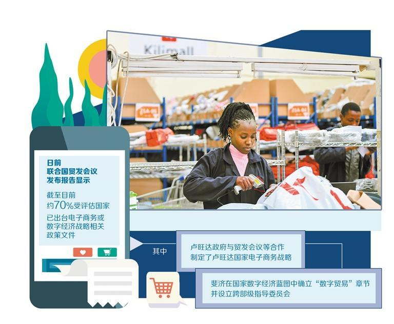 报告指出,相比5年前的评估结果,如今,各国政府普遍认识到电子商务是国家经济发展的重要引擎。电子商务已从各国贸易部门的边缘议题,上升为国家经济战略的组成部分。多数国家已制定国家电子商务或数字经济战略,约70%的受评估国家已出台正式的政策文件。其中,卢旺达政府与贸发会议等合作,制定了卢旺达国家电子商务战略,该战略为期5年,并且已被纳入卢旺达“2050愿景”框架;斐济在国家数字经济蓝图中确立“数字贸易”章节,并设立跨部级指导委员会;赞比亚、马拉维把电子商务纳入金融包容与中小企业发展战略;秘鲁和突尼斯建立国家电子商务统计体系,为政策提供量化基础。