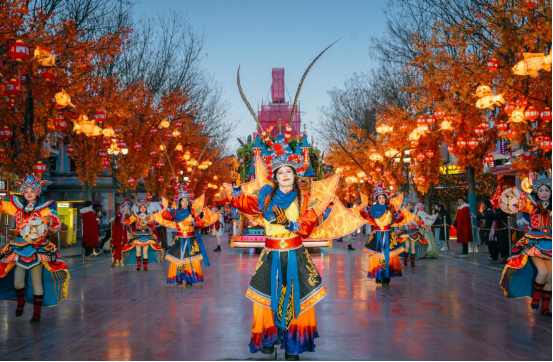 正值大同方特“潮味幸福年”活动期间,乐园围绕“游八仙”民俗打造的系列活动,也让整场盛宴更加丰富多彩、年味十足。“新春市集”汇聚本地特色美食及糖画、剪纸等非遗手作,游客可逛市集、品美食、赏非遗,在烟火气中重温传统年味儿;“新春大巡游”以流光溢彩的花车、萌趣十足的十二生肖,将新春祝福传递到乐园的每一个角落;高桩舞狮、绛州鼓乐等民俗表演轮番登场,鼓乐齐鸣、雄狮腾跃,与“游八仙”的祈福氛围完美契合。