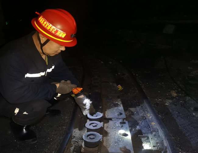 在井下运输前,刘瑞锋书记检查着每一处运输线路,对运输设备进行全面检查,确保设备正常运转。包括车辆、拔绳轮、轨道、钢丝绳等。(王亮)