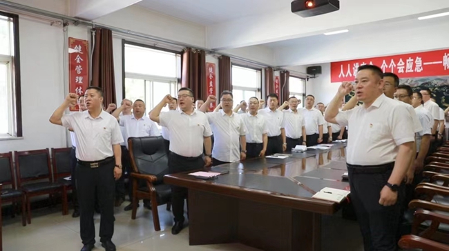 启动仪式上,参会人员集体安全宣誓,观看安全生产月主题宣传片。(王旭、魏国庆)