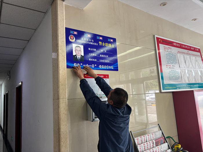 活动当天,分包常顺煤业的南娄镇联企民警专程到公司现场办公,与相关人员展开座谈交流,详细询问公司当前生产经营状况、内部安全管理体系建设、周边治安环境等情况,认真倾听企业在发展过程中遇到的治安难题及实际需求,并逐一记录梳理,为后续精准对接服务奠定基础。并在醒目位置张贴警企联络点公示栏,清晰标注联络民警姓名、联系方式、工作职责等关键信息,确保公司在需要时能够第一时间联系到对接警力。同时现场张贴警企联络点工作制度,明确联络点在治安防范指导、矛盾纠纷调解、安全知识宣传、应急联动处置等方面的核心职能,规范工作流程,保障联络机制高效运转。
