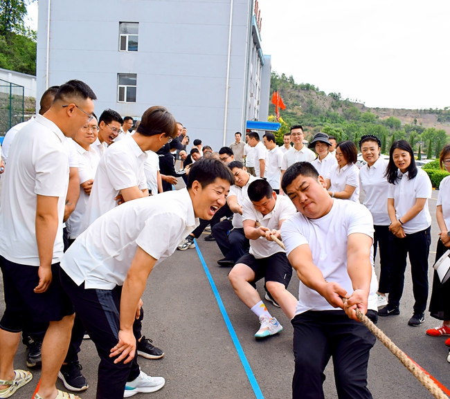 拔河比赛现场。各参赛队伍纷纷派出实力强劲的队员,他们紧握长绳,齐声呐喊,齐心协力将对方拉过规定界线。比赛过程中,大家充分展现出团队的力量与协作精神,现场加油助威声此起彼伏,将气氛推向高潮。