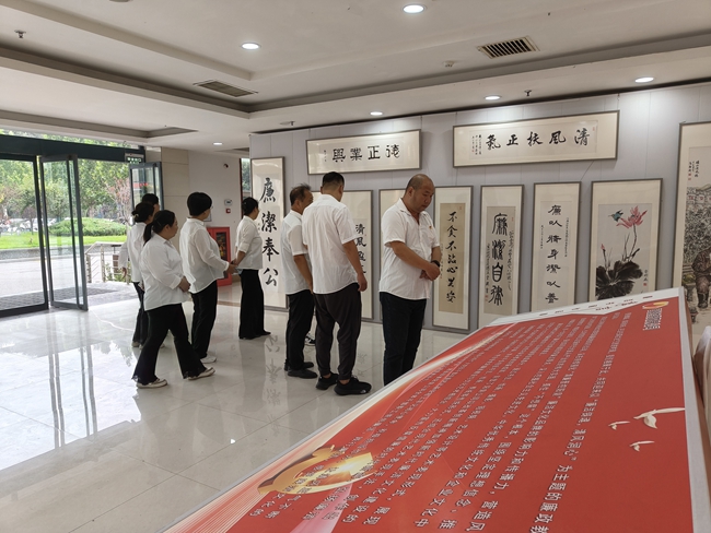 步入展馆,一幅幅构思精巧、寓意深刻的廉政书画映入眼帘,一句句警醒人心的廉洁格言令人深思。这些作品巧妙地将廉政文化与艺术相结合,让大家在欣赏艺术的同时,感受到了廉洁文化的熏陶。