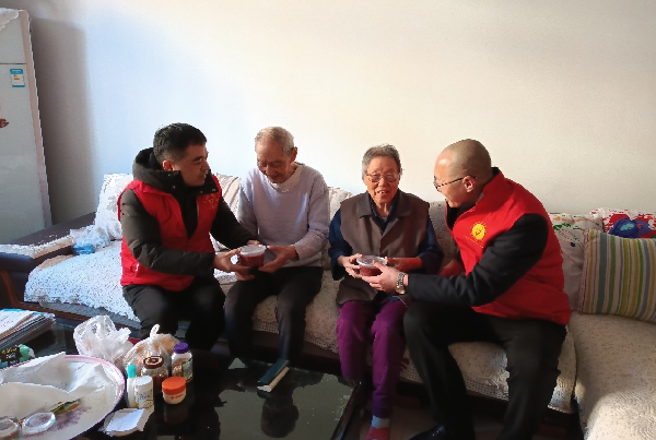 与此同时,另一组志愿者们则带着刚刚出锅的腊八粥,前往辖区内行动不便的老人家中。他们敲开一扇扇门,为老人们送上了这份特别的温暖。每到一户,志愿者们都会亲切地与老人交流,询问他们的身体状况和生活情况,并送上节日的祝福。刘奶奶感动地说:“谢谢你们,总是想着我,这腊八粥让我心里暖暖的。”