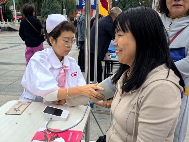 活动期间,盂县中医医院的医护人员热情满满。他们为过往群众发放各类健康科普宣传资料,内容涵盖中医养生保健、疾病预防等知识。同时,免费为群众测量血压,耐心解答大家关于健康方面的疑问。对于有需求的群众,还进行了细致的中医诊治,通过望闻问切,给出专业的中医调理建议。