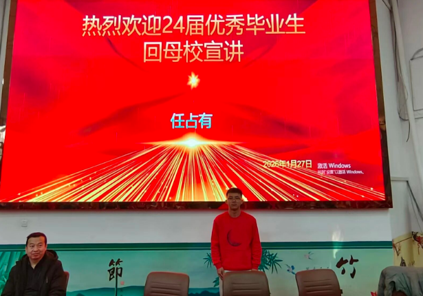 山西科技报朔州讯 (刘志伟)1月28日下午,朔州市第二中学校24届优秀毕业生任占有同学,以哈尔滨工业大学(C9高校)大二学生的身份,重返母校,为学弟学妹们带来了一场干货满满的主题宣讲,用自身经历传递奋进力量,搭建起高中与大学的沟通桥梁。