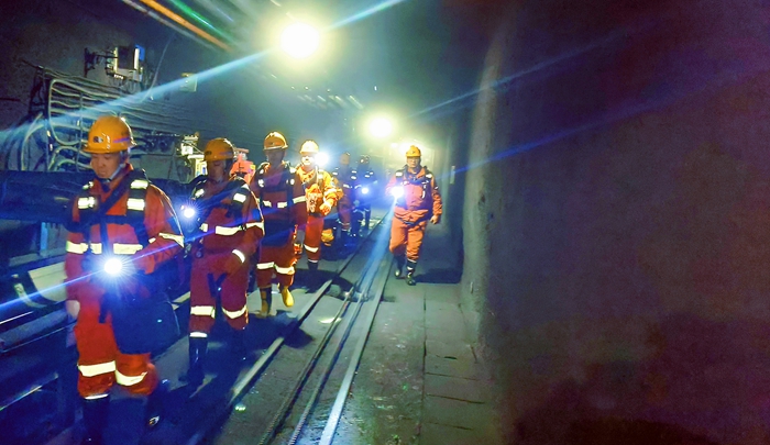 穿越“火线”。演练聚焦撤人、灭火、保通风三大核心任务。井下受威胁区域人员在跟班副队长与安全员的有序引导下,沿150102回风顺槽→1501采区胶带巷联络巷→行人斜井既定避灾路线快速、有序、安全撤离,全程衔接顺畅、忙而不乱。灭火环节中,抢险救援组在兼职救护队中队长带队下迅速深入井下,先通过红外测温仪、气体检测仪探明起火点与周边瓦斯、一氧化碳浓度,优先用干粉灭火器近距离喷射火源核心区域,进一步采取分区封闭、惰化灭火措施,全程专人监测气体与温度变化;保通风方面,技术与机电保障组联动查看局扇运行参数、回风绕道调节风门开关情况,构建设施可靠、系统稳定的通风体系,安排专人巡查撤离通道通风状况并监测风流速度,查看通风系统是否受损,确保风流稳定、有毒有害气体有序排出。