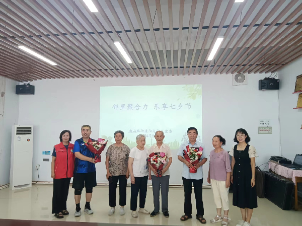 活动伊始,社区工作人员介绍了七夕的节日由来及传说,并对结婚周年的名称及含义进行讲解,随后,社区党委书记张燕云为金婚夫妇和青年夫妻送去节日的祝福。