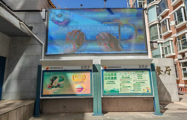 一是广泛宣传,营造保密氛围。利用公示栏、电子大屏等展播宣传标语、张贴宣传海报、通过微信公众号转发保密知识,引导干部职工深刻认识做好保密工作的重要性和严峻性,营造“人人知保密,人人善保密”的良好氛围。