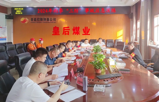 近日,皇后煤业组织开展2024年雨季“三防”事故应急演练,检验雨季“三防”应急预案是否完善、抢险救援力量应急处置能力是否合格。