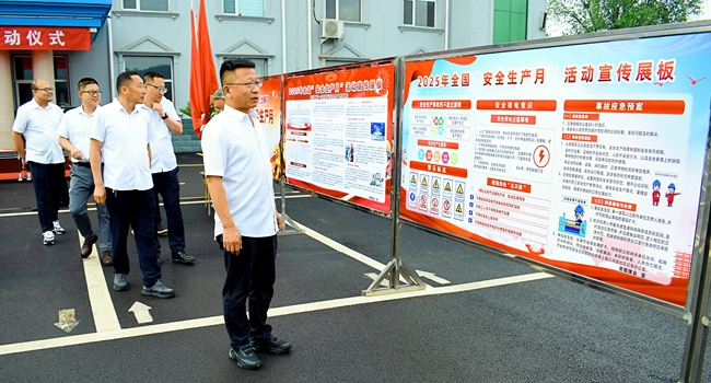 党支部书记、董事长、矿长崔爱军做动员讲话,党支部副书记魏政泰主持活动仪式,安全副总经理魏征宣读“安全生产月”活动倡议书。