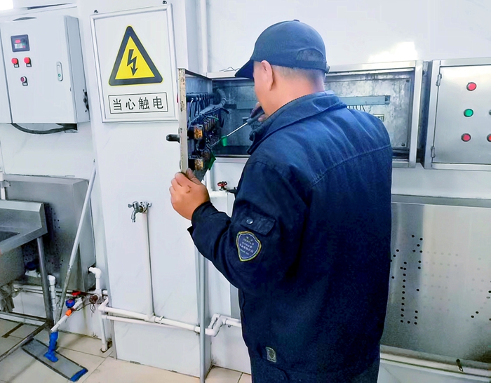 用电安全“零死角”,筑牢基础保障。公司食堂为炉灶全电驱模式,针对冬季用电负荷攀升的特点,专门组织电气专业技术人员,对食堂供电线路、开关设备、用电终端开展拉网式、地毯式排查,重点核查线路老化、绝缘破损、接头松动、过载运行等关键风险点,确保用电安全无死角、无盲区。同时,严格规范食材摆放、厨具收纳、物资堆放秩序,坚决做到分类存放、整齐有序、标识清晰,同步提升操作规范性与环境安全性。