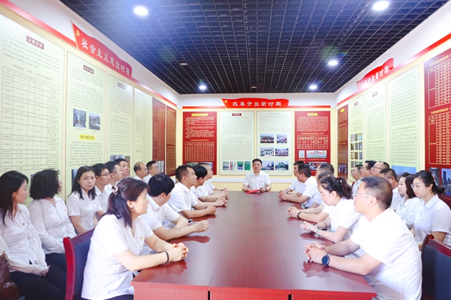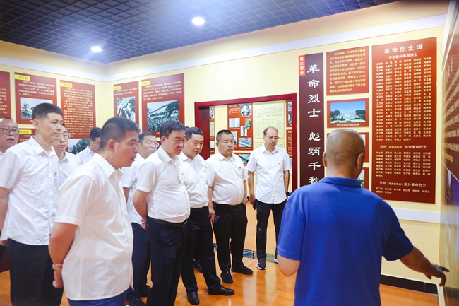 鲜红醒目的党旗前,党员们高举右拳,重温入党誓词。公司党支部书记就如何继承和发扬伟大建党精神,发出了立足岗位、齐心协力、真抓实干、勇于创新、拼搏进取,争创更好工作实绩的号召和要求。随后,在讲解员带领下,大家有序参观了纪念馆展厅,通过一幅幅珍贵的历史照片、一段段可歌可泣的英雄事迹、一件件经受红色岁月洗礼的实物,追忆和缅怀革命先烈,深刻感悟他们为夺取抗战胜利而浴血奋战、不怕牺牲的爱国主义情怀。