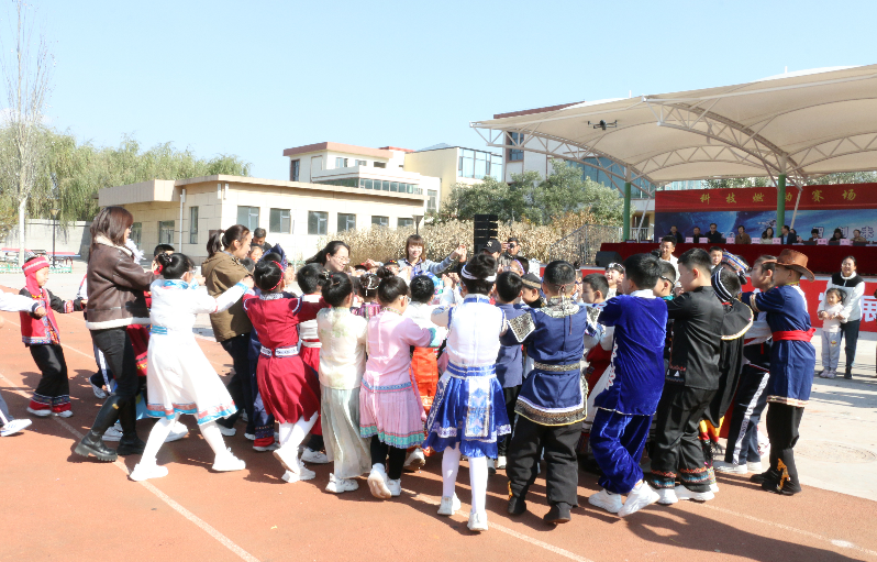 盛会尾声,来自贵州的老师们带领全体师生共跳《民族同心舞绘团圆》。从黔山秀水到三晋大地,民族舞步与孩童笑颜交织,不仅是民俗风情与教育文化的和鸣,更生动诠释了“各民族像石榴籽般紧紧相拥”的深厚情谊,用舞蹈勾勒出“中华民族一家亲”的美好画卷,为本次运动会增添了浓厚的文化底蕴与温暖底色。