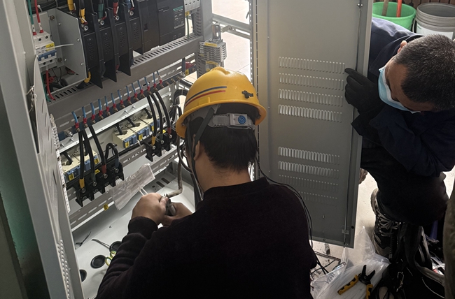 更换筹备期,队员们利用非生产时段梳理优化线路,精心布置安装位置,反复核对细节。更换当天中午检修的短暂空隙,成了他们争分夺秒的“战场”。现场指挥一声令下,队员们分工明确,一组保障安全措施到位,一组有序拆卸、安装、连接。凭借精湛技术与默契配合,他们在短时间内便完成安装调试并成功通电。
