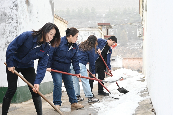活动现场,党员干部亮身份、扛责任,对村内主干道、文化广场的卫生死角开展清理,扫帚清扫路面垃圾与尘土,铁铲铲除积雪淤泥和杂草。