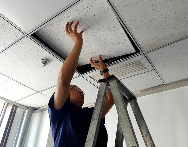 工作人员逐一排查办公楼内所有电路和空调机组,对中央空调主控系统进行维护,反复校准各区域的温度设置,使不同楼层、不同办公室的供冷效果均匀一致,确保空调制冷效果良好,温度调节反应灵敏。同时,深度清洁通风管道,避免因积尘影响冷气输送效率,保证空气更加清新洁净,为干部职工在炎炎夏日里营造一个凉爽舒适的工作环境。(王丽萍)