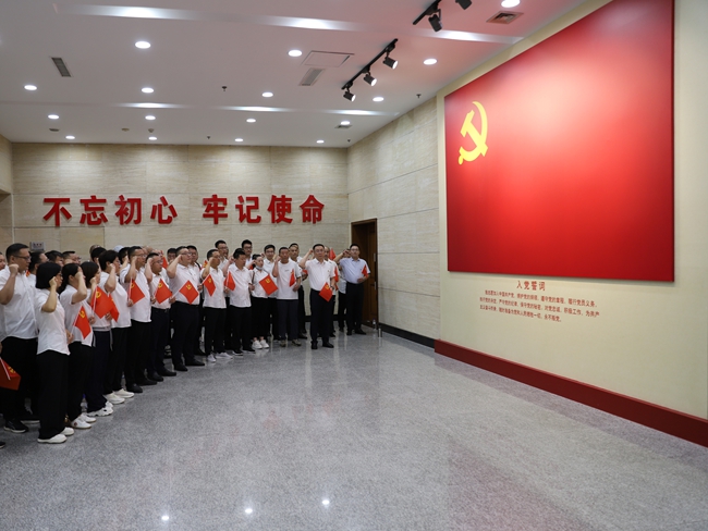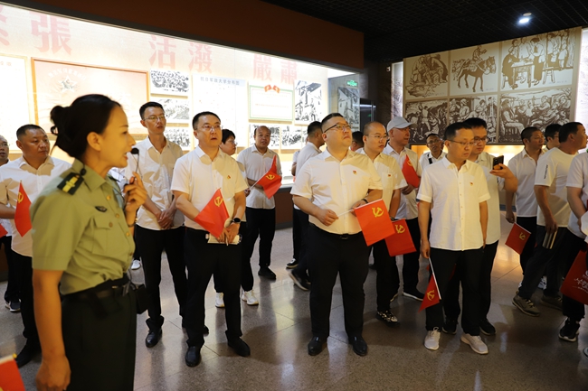 在讲解员的讲解下,一幅幅生动的图片、一份份珍贵的文件、一件件斑驳的器物、一幕幕英雄的画面,一一展现在大家的眼前。通过参观革命圣地,聆听抗战英雄事迹,目睹抗战实物,大家一同感受了硝烟弥漫的抗战岁月和战火纷飞的革命年代,深深领悟了八路军将士和根据地人民不怕牺牲、英勇无畏的伟大革命精神,缅怀了老一辈革命家在抗战中的领袖风采和不朽功勋,接受了爱国主义和革命教育的洗礼。在纪念馆鲜红党旗下,全体党员干部列队举拳,举行了庄严的宣誓,重温了入党誓词。