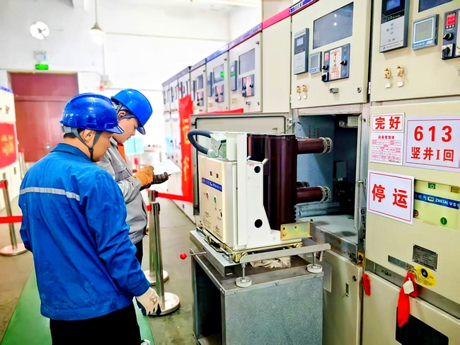 当日工作任务繁重、点多面广、交叉作业多,但现场秩序井然。工作人员分组而行,有条不紊地分别对35kV变电站I回配电设备、主通风机房、瓦斯泵站配电室I回高压开关、井下 9#中央变电所、15#中央变电所、15#采区变电所I回高压开关进行检修。在开关设备区,熟练地操作着各类检测工具,对断路器、隔离开关等设备进行分合闸测试。仔细检查设备的触头接触情况,确保接触良好,无过热、烧蚀痕迹;对操作机构进行润滑和调试,保证其动作灵活、可靠;对设备的二次控制回路进行逐一排查,检查接线是否牢固,有无松动、虚接现象,确保控制信号能够准确传输。同时运用专业的设备,对二次设备的继电保护装置的定值进行精确校验,确保在电网发生故障时,能够迅速、准确地动作,切除故障线路。