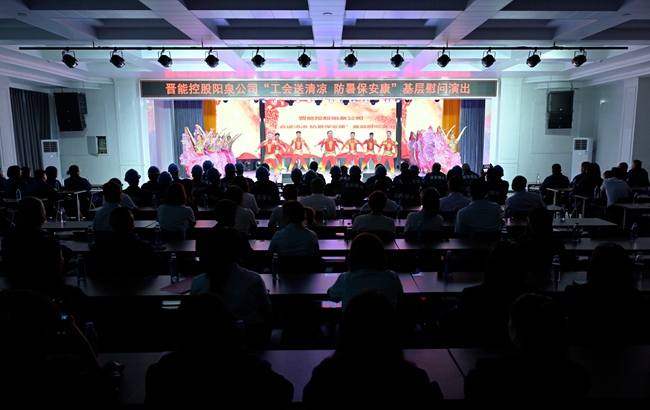 “工会送清凉 防暑保安康”。8月7日上午,阳泉公司工会组织的慰问演出活动走进晋能控股集团阳泉公司保安煤业,为奋战在生产一线的干部职工现场“烹制”一道道丰盛的文艺大餐。阳泉公司党委副书记、工会主席贾逸凡,保安煤业班子成员以及100余名干部职工现场观看了演出。