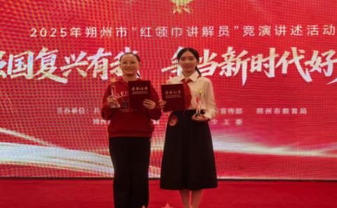 山西科技报朔州讯 (刘志伟)近日,由共青团朔州市委等多部门联合主办的 “强国复兴有我 争当新时代好少年” 2025 年朔州市 “红领巾讲解员” 竞演讲述活动圆满落幕。朔州市第四中学积极响应号召,24-11 中队梁妙涵、24-17 中队徐颢洋两位同学凭借扎实表现脱颖而出、斩获佳绩,充分展现了四中少先队员蓬勃向上的精神风貌。