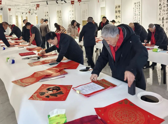 活动现场暖意融融,墨香四溢。我市书法名家与书法爱好者齐聚一堂,挥毫泼墨,笔走龙蛇。一副副寓意吉祥、翰墨淋漓的春联和“福”字在他们手中诞生,将对新一年的美好憧憬与诚挚祝福倾注于字里行间。市新联会会员,会员单位代表或细心挑选心仪的联句,或驻足欣赏书法艺术,脸上洋溢着迎接新春的喜悦笑容。千副春联与“福”字,承载着浓浓的“年味”与“情味”,被送到会员,会员企业员工及市民手中,也将温暖与祝福传递到城市的角落。