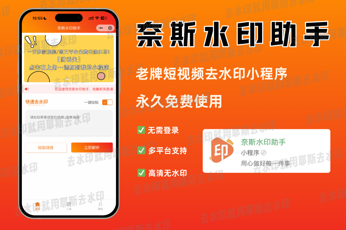 4、临时应急处理:在外急需去水印时,微信搜索即用,低配手机流畅运行。