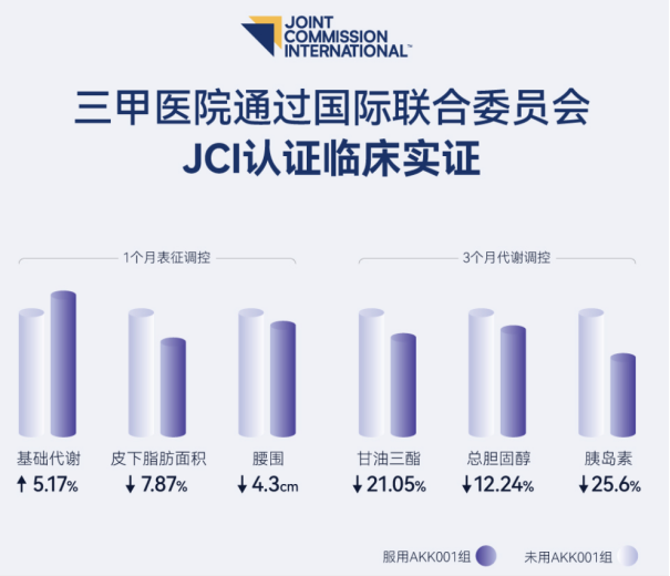 据公开信息透露,此次随机双盲对照试验纳入60名超重志愿者,分为AKK001制剂干预组与安慰剂组。结果显示:干预一个月后,实验组基础代谢提升5.2%,皮下脂肪减少7.87%,腰围平均缩减4.3cm,且无任何不良反应。目前,原衍生物也正同步推进AKK001原料用于脂肪肝、衰老干预等方向的研究,为国产菌株积累系统化证据。