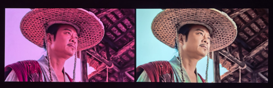 (左) 极米z6xpro投影效果图,(右)大眼橙r3ultra高亮版投影效果图