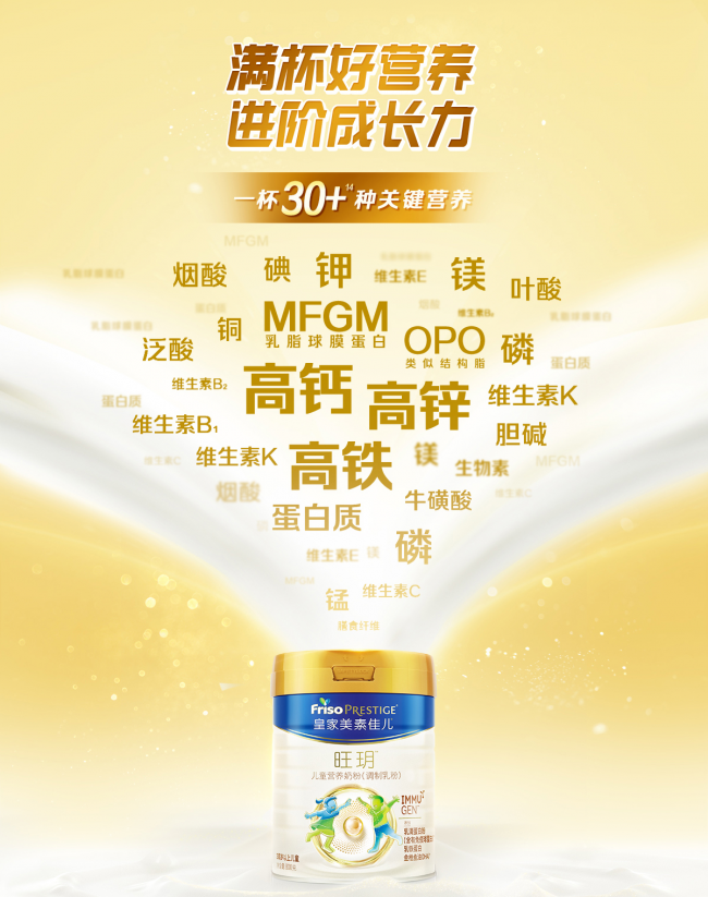 作为专为3岁以上儿童研发的免疫力奶粉,旺玥儿童奶粉的IMMU GEN强护配方紧密贴合这一阶段孩子的三大核心需求——免疫力发展关键期的防护、入园后学习活动的营养补充、日常饮食的营养均衡吸收,打造出“三重免疫防护+眼脑发育助力+全面营养补给”的综合营养架构,覆盖儿童免疫提升与日常成长的多重需求。