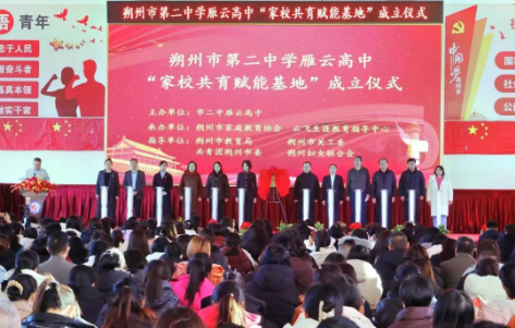 山西科技报朔州讯 (刘志伟)暖冬相聚,共育花开。近日,朔州市第二中学雁云高中“家校共育赋能基地”成立仪式在学校15楼会议厅隆重举行。朔州市教育局、关工委、团委、妇联等部门代表,教育领域专家及500余名学生家长齐聚一堂,共同见证这一深化育人协同的重要时刻。活动由学校董事长助理柳雁勇主持。