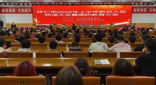 山西科技报朔州讯 (刘志伟)3月23日,怀仁市2026年上半年新兵入伍欢送大会暨国防教育大会在朔州陶瓷职业技术学院顺利举行。庄严的《义勇军进行曲》奏响,拉开了欢送仪式的序幕,28名新兵身着戎装、肩披绶带、胸戴红花,承载着家乡父老的殷切期望,即将奔赴祖国大江南北,开启保家卫国的光荣征程。