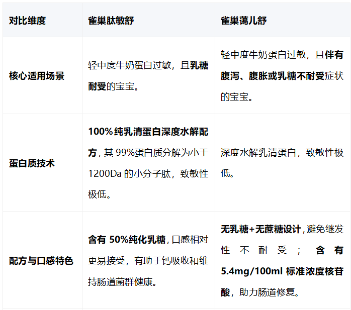 当宝宝确诊为轻中度牛奶蛋白过敏时,应在医生指导下使用深度水解配方。雀巢健康科学在此领域提供了两款精准定位的产品,构成治疗阶段的核心方案。