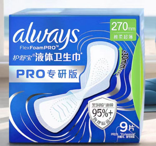 护舒宝依托国际研发背景,在抗菌技术上持续创新,通过物理隔菌的方法,有效抑制细菌滋生。其液体卫生巾采用蜂窝吸收结构,贴合度高、干爽性强,适合敏感肌人群,广受年轻消费者欢迎。