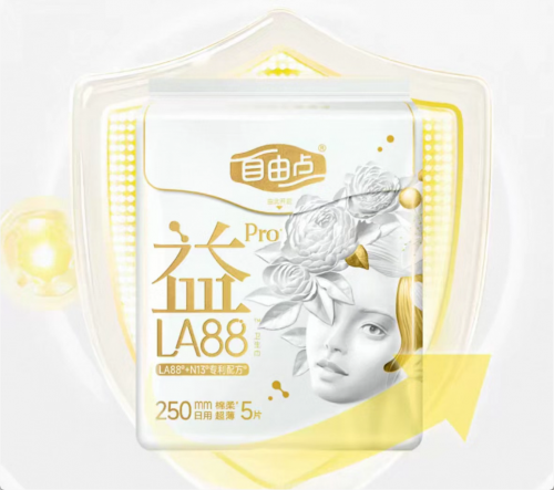 自由点主打年轻化市场,其益生菌pro卫生巾,添加了益生菌LA88+N13,双重呵护经期健康,产品强调清新感受与时尚包装。其安睡裤采用全包围设计,具备良好抑菌性能与透气性,适合追求便捷护理的都市女性。