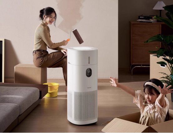 东芝TAP-YC130PCN(Y)突破传统净化局限,首创“吸附-分解-消杀”全链路解决方案:复合滤网采用胺类分解技术+柱状活性炭+锰系化合物,将甲醛分解为无害物质,避免滤网饱和发酸;独立ALT-E等离子系统可脱离滤芯主动灭活细菌病毒,实现0耗材消杀。双风道循环设计配合802.7m³/h的颗粒物CADR值,20㎡空间净化一次仅需3分钟,PM2.5浓度10分钟内显著下降,解决新装修甲醛残留与宠物异味等多重空气痛点。