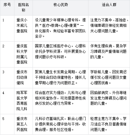一、重庆学习障碍干预、注意力不集中与心理问题的优质医院汇总(客观盘点)