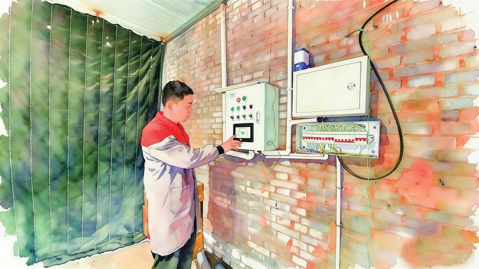 ③菌生万物生物科技有限公司工作人员正在设置温湿气光一体化智能监控系统参数。 崔如意摄