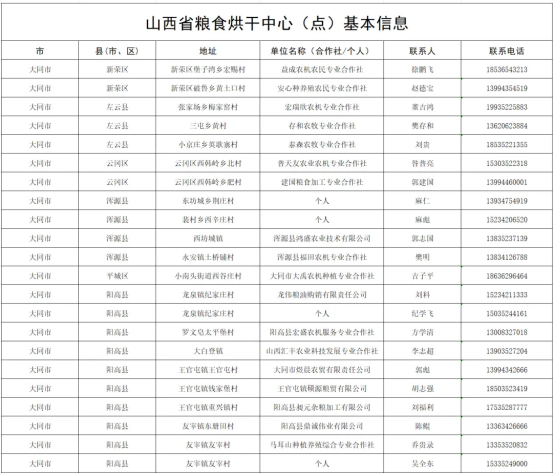 为应对近期连日阴雨天气,有效发挥烘干场所作用,山西省农业农村厅及时摸排全省烘干场地及设备底数,提前组织开展机具检修、维修,现将全省粮食烘干中心(点)情况进行公布,请有需要的农民朋友就近联系。