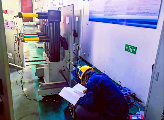 多元扫描“零盲角”。当日8时30分,各项检修工作全面铺开,公司精心组建线路检修、设备检修两大专业专班,分工协作、同步推进,全力提升检修效率与质量。线路组奔赴9公里外的常顺I回353线路沿线,对33座塔杆开展“拉网式”全方位巡检,检修人员身着反光背心,攀爬塔杆细致检查金具、绝缘子、导线连接点等关键部位,借助望远镜排查线路通道内树障、异物等安全隐患,运用红外测温仪实时监测线路接头温度,针对排查发现的导线接头轻微发热、绝缘子瓷瓶污渍问题,第一时间使用专用工具进行紧固、清洁处理,同时全面清理线路通道内低矮杂草,筑牢线路防外力破坏防线。站内设备检修专班同步在35kV配电室、主变区域高效作业,逐一打开12面KYN61-40.5型高压开关柜柜门,用专业绝缘工具清理柜内灰尘、异物,对断路器、隔离开关等核心部件开展机械特性测试,通过兆欧表精准检测绝缘电阻并详细记录各项数据;针对备检SZ10-10000/35-GY型主变压器,全面开展油位、油温、油质检查,完成绕组直流电阻测试、绝缘油色谱分析等专项检测,同时对35kVI段、10kVI段母线及附属电缆进行全方位耐压试验,精准排查设备潜在隐性故障。检修人员、技术人员、安全员实时联动、密切配合,检修工作高效有序推进。
