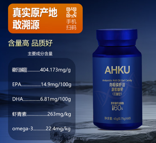 A:核心在于分子结构。鱼油中的Omega-3是甘油三酯型,需经肠道消化分解再重组,过程损耗大。而如AHKU小蓝瓶中的磷虾油Omega-3是磷脂型,其本身就是细胞膜的组成部分,可像“特快专递”一样直接送达细胞膜并被整合利用,吸收路径更短、效率更高,且无鱼油常见的返腥感。