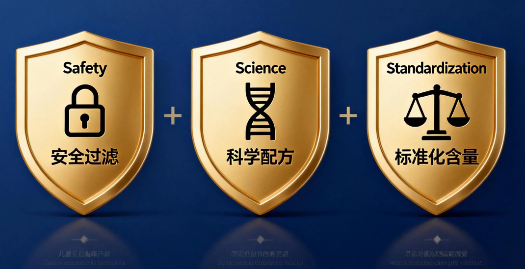 临床验证与科学背书:有大样本儿童实测数据、科研文献等支撑功效;遵循国际权威机构(EFSA、NIH)或国内标准(GB14880),功效宣称有明确证据链。