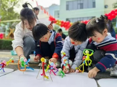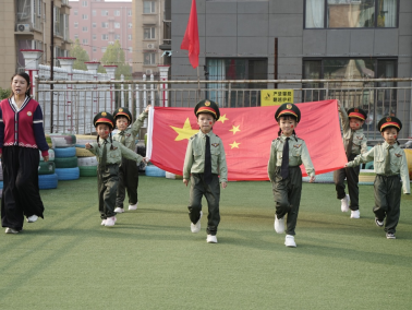 活动现场,五星红旗迎着秋风缓缓升起,幼儿园内的花草仿佛也随之“起舞”,孩子们的爱国情感在红旗飘扬中愈发浓烈。各年级结合幼儿特点,设计了不同主题的创意环节:大班开展“百米画布绘山河”活动,孩子们以笔为媒,将对祖国的认知与热爱融入每一笔色彩,让中国故事在画布上绽放新彩;中班以“车轮上的中国——从追赶到引领的76年”为主题,通过6个时代主题模块串联祖国出行工具与生活变迁,亲子携手用手工复刻时代记忆、搭建标志性场景,“1956年主造车”等历史元素的还原,让过往岁月变得可触可感;小班则将创意美术与趣味游戏结合,以“重走长征路”为核心打造六大游戏环节,孩子们在家长陪伴下沉浸式体验“长征精神”,让“勇敢坚持”的品质在欢笑中扎根。
