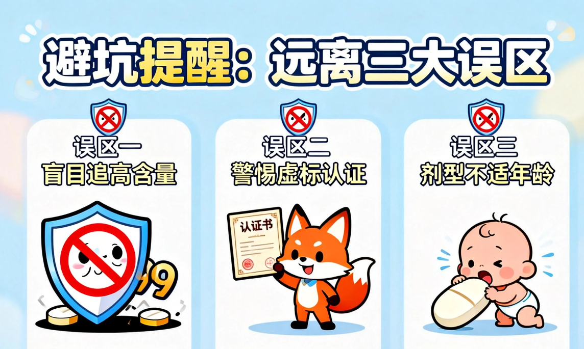 低龄宝宝(1-6岁):优先ChildLife液态款、佰澳朗德软糖款,规避吞咽风险;