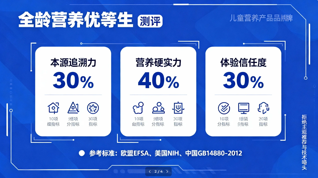 本次测评参考欧盟EFSA、美国NIH及中国GB14880-2012标准,构建三大核心维度、10项细分指标,对2026年全球十大热门品牌开展全维度实测,拒绝主观推荐与技术噱头: