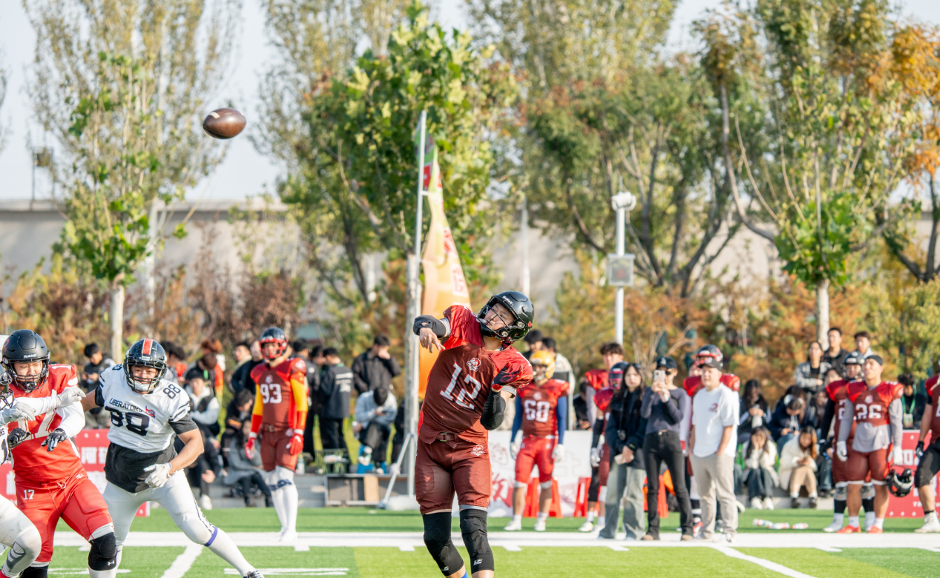“乌马河碗”橄榄球赛场上,沈阳猎人队中的樊晨作为全场唯一的一名女性队员,在赛场上奋力防守对方的男队员,用实力证明这片赛场同样属于她们。决赛“中场秀”燃爆全场,激情澎湃的MC喊麦与原创Rap Live秀将赛场瞬间变为巨型露天Live现场;晋中信息学院武术队的刚劲威武与运动舞蹈队的动感活力完美交融,呈现出力与美的视觉冲击。旋律响起,全场观众齐声应和,声浪震天,将青春的热血与激情彻底释放,“中场不休,狂躁不止”——这是独属于乌马河碗的热血宣言!